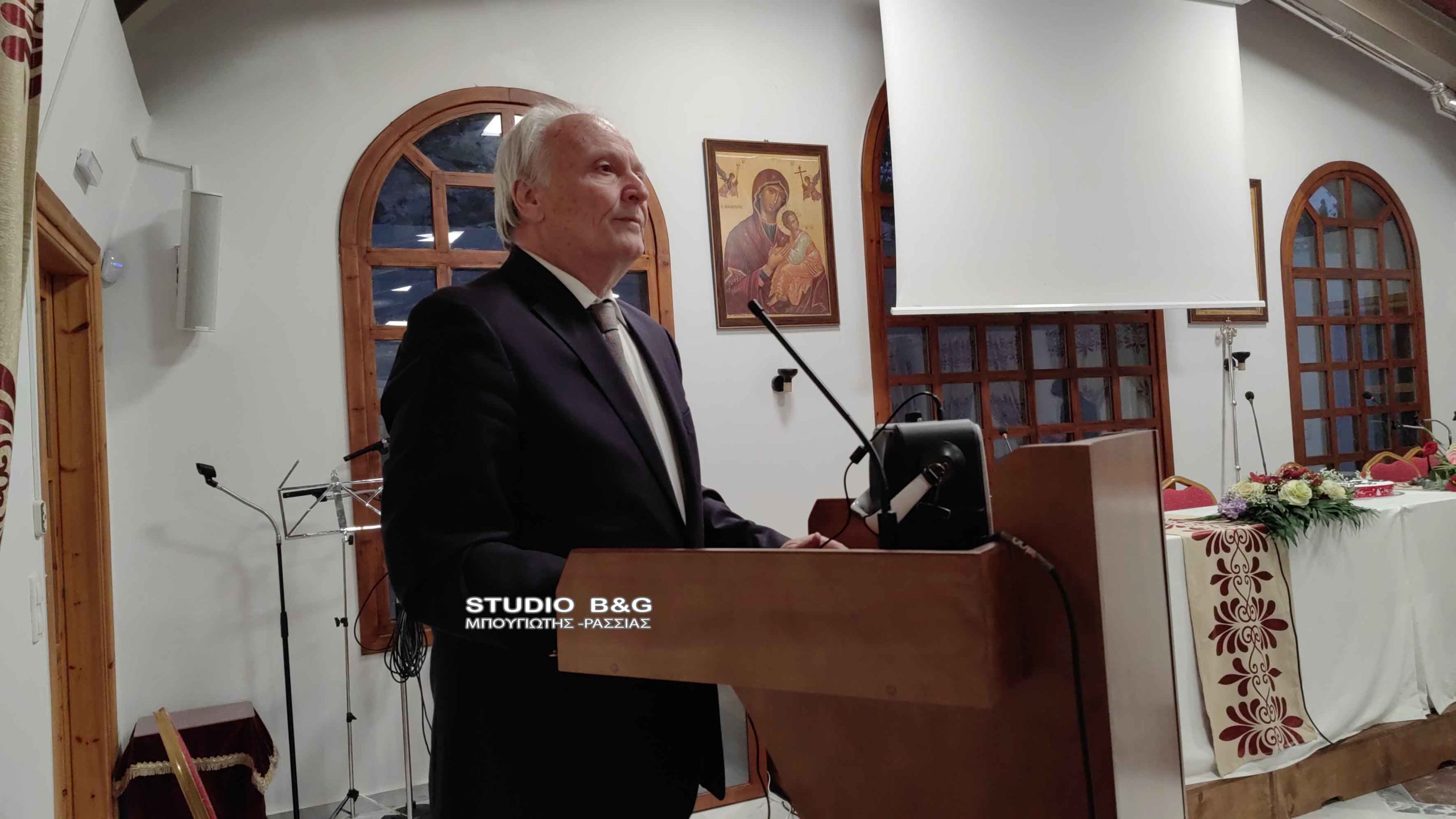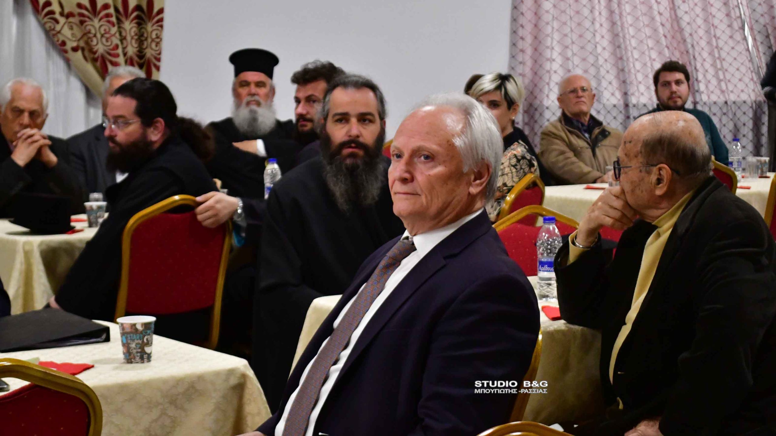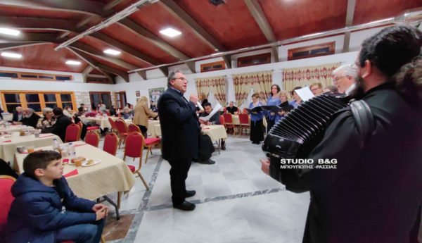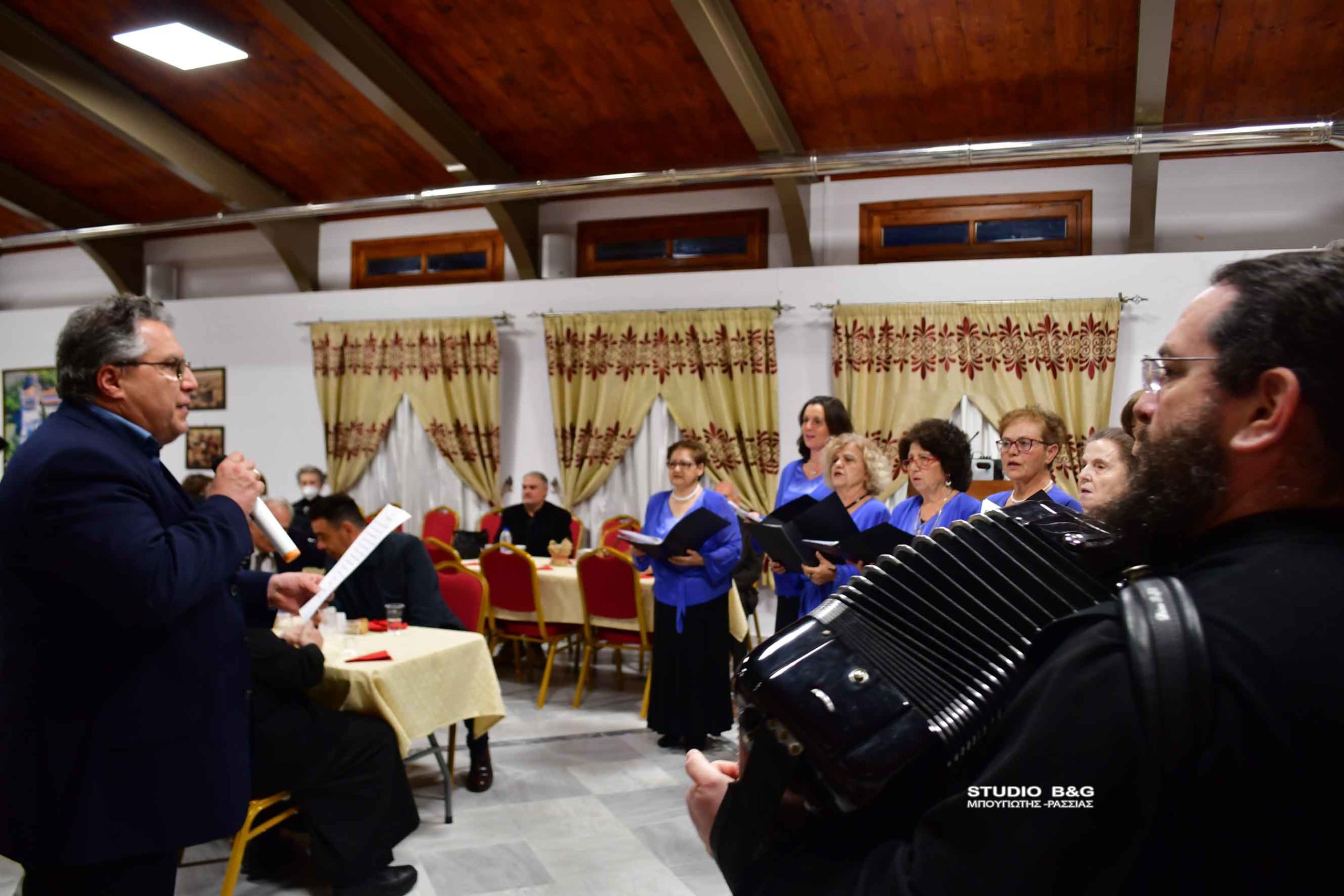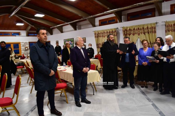 Ο αντιδήμαρχος Ναυπλίου και πρωτοψάλτης Κ. Ρούτουλας με την συνοδεία της χορωδίας Βυζαντινοί και παραδοσιακοί αντίλαλοι και και την συνοδεία στο ακορντεόν του π. Δημητρίου Κρουσταλάκη , πλαισίωσαν μουσικά την εκδήλωση.