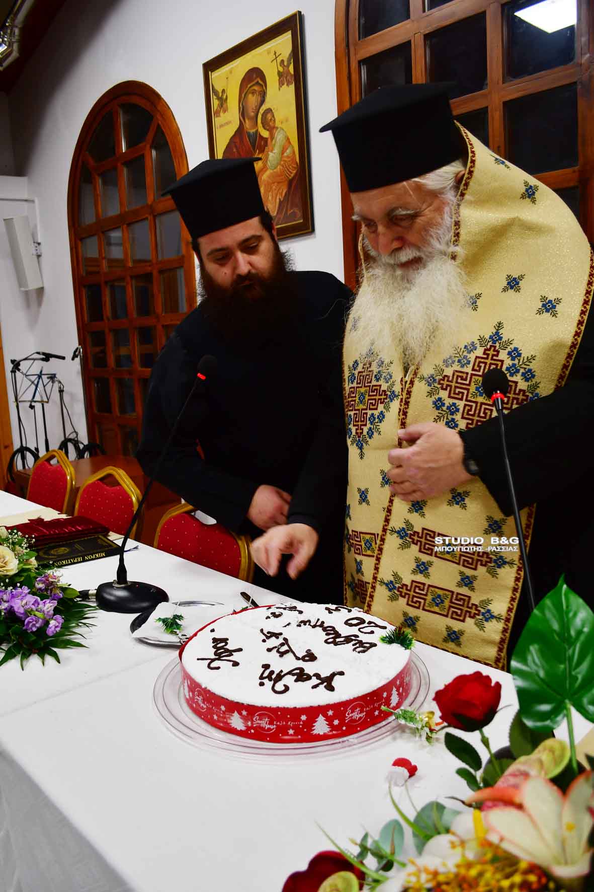 Στην κοπή της πίτας παραβρέθηκαν Ιερείς της Μητροπόλεως Αργολίδος, υπάλληλοι και φίλοι του Ραδιοφωνικού σταθμού, του βιβλιοπωλείου και των εκδόσεων της Μητροπόλεως Αργολίδος ” Επιστροφή”