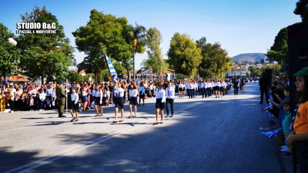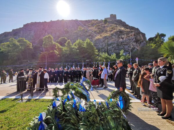 Οι επετειακές εκδηλώσεις για την εθνική εορτή της 28ης Οκτωβρίου 1940 στο Ναύπλιο ολοκληρώθηκαν με την μαθητική και στρατιωτική παρέλαση.