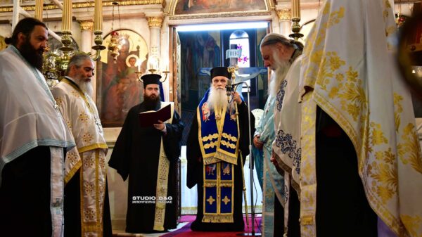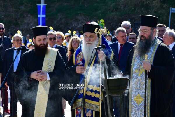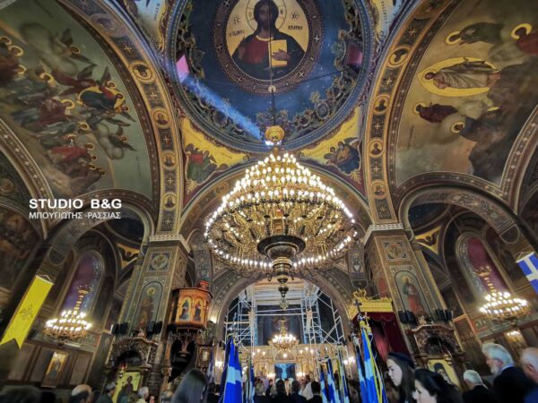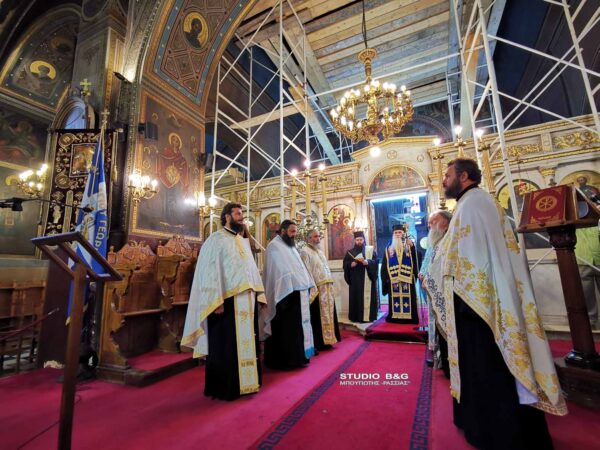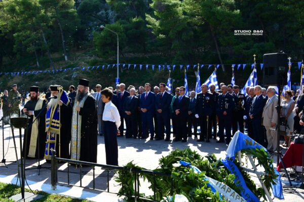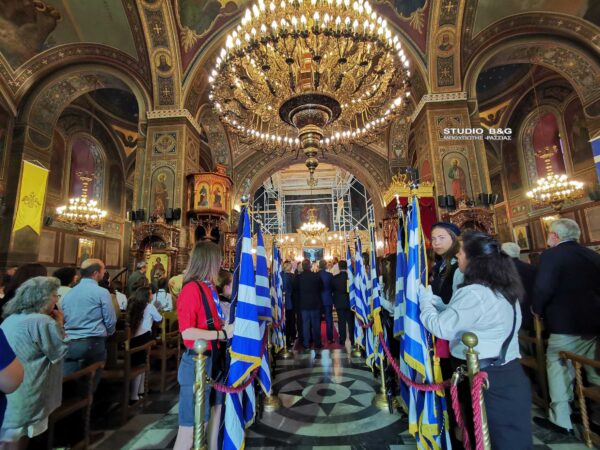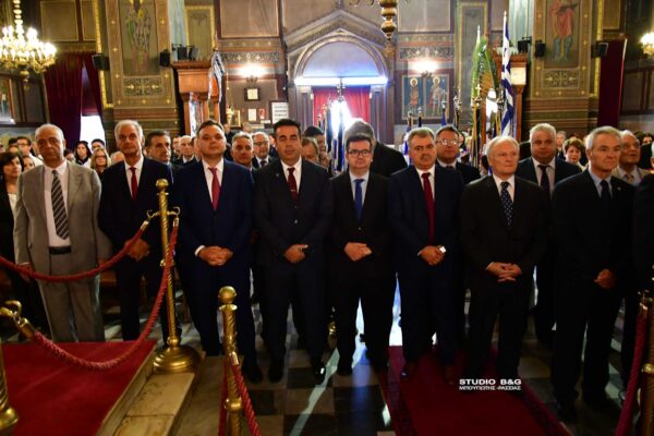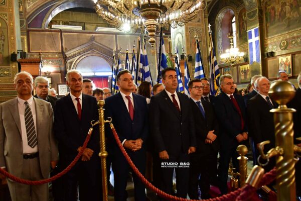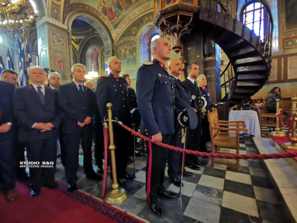 Προηγήθηκε δοξολογία στο Μητροπολιτικό Ναό του Αγίου Γεωργίου στο Ναύπλιο, χοροστατούντος του Μητροπολίτη Αργολίδος Νεκταρίου.