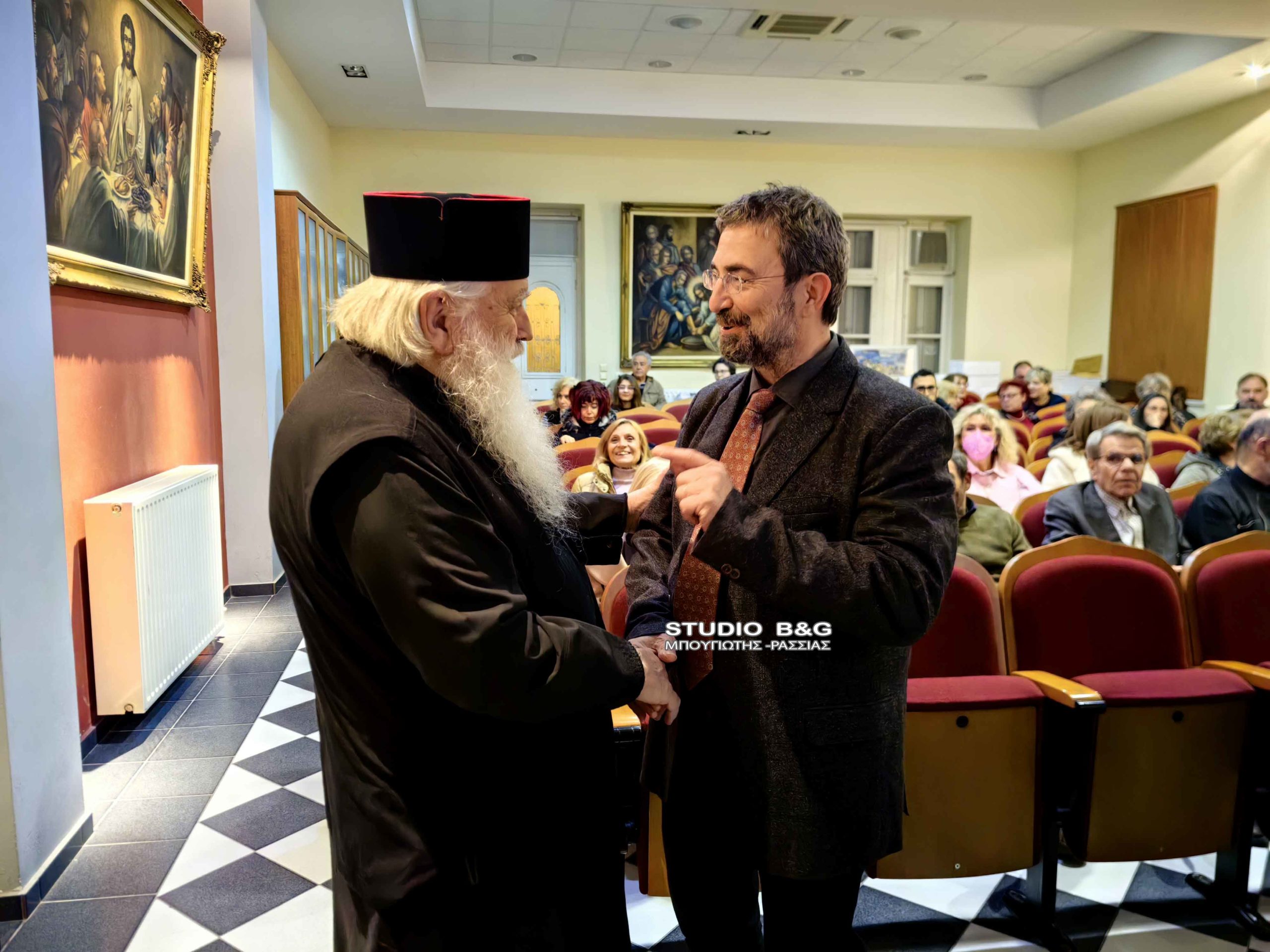 Την εκδήλωση παρακολούθησε ο Μητροπολίτης Αργολίδος κ. Νεκτάριος και προλόγισε ο Θεολόγος Βασίλειος Αντωνόπουλος. Την επιμέλεια της όλης δομής της εκδήλωσης είχαν ο εφημέριος του Αγίου Νικολάου Ναυπλίου π. Νικόλαος Μίχος και ο υπάλληλος της Μητροπόλεως Αργολίδας Κωνσταντίνος Θεοδώρου.
