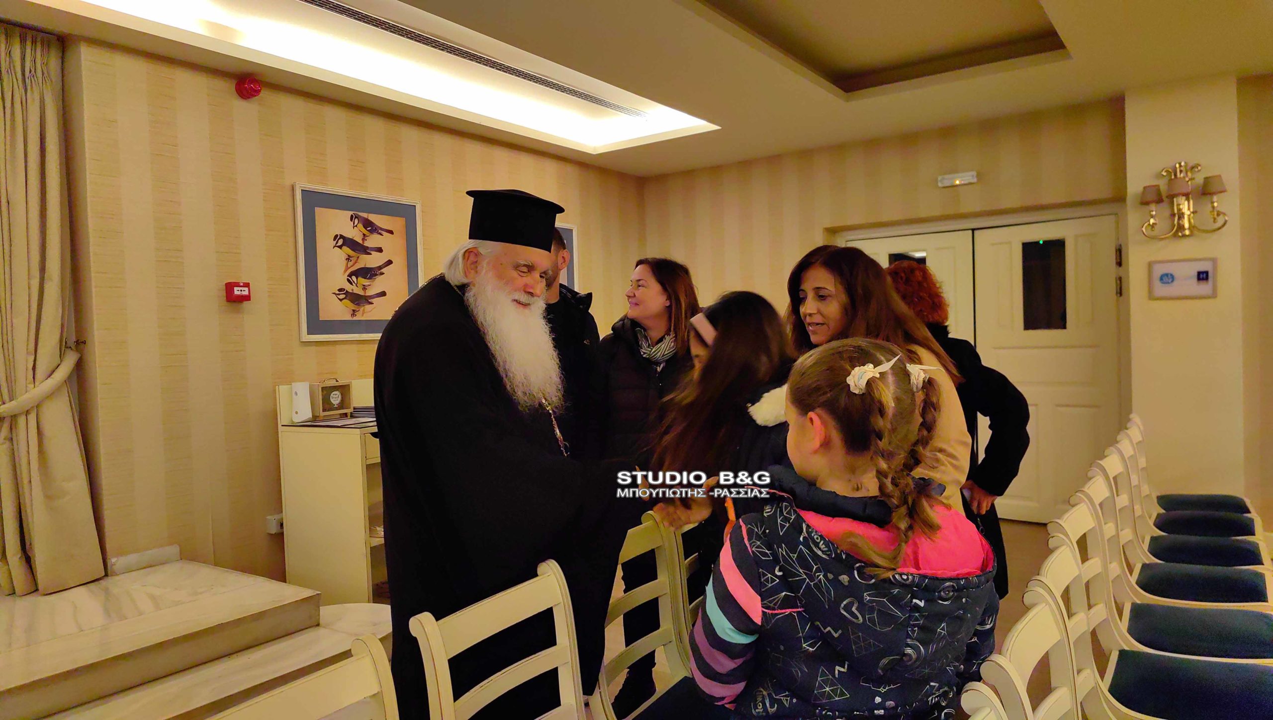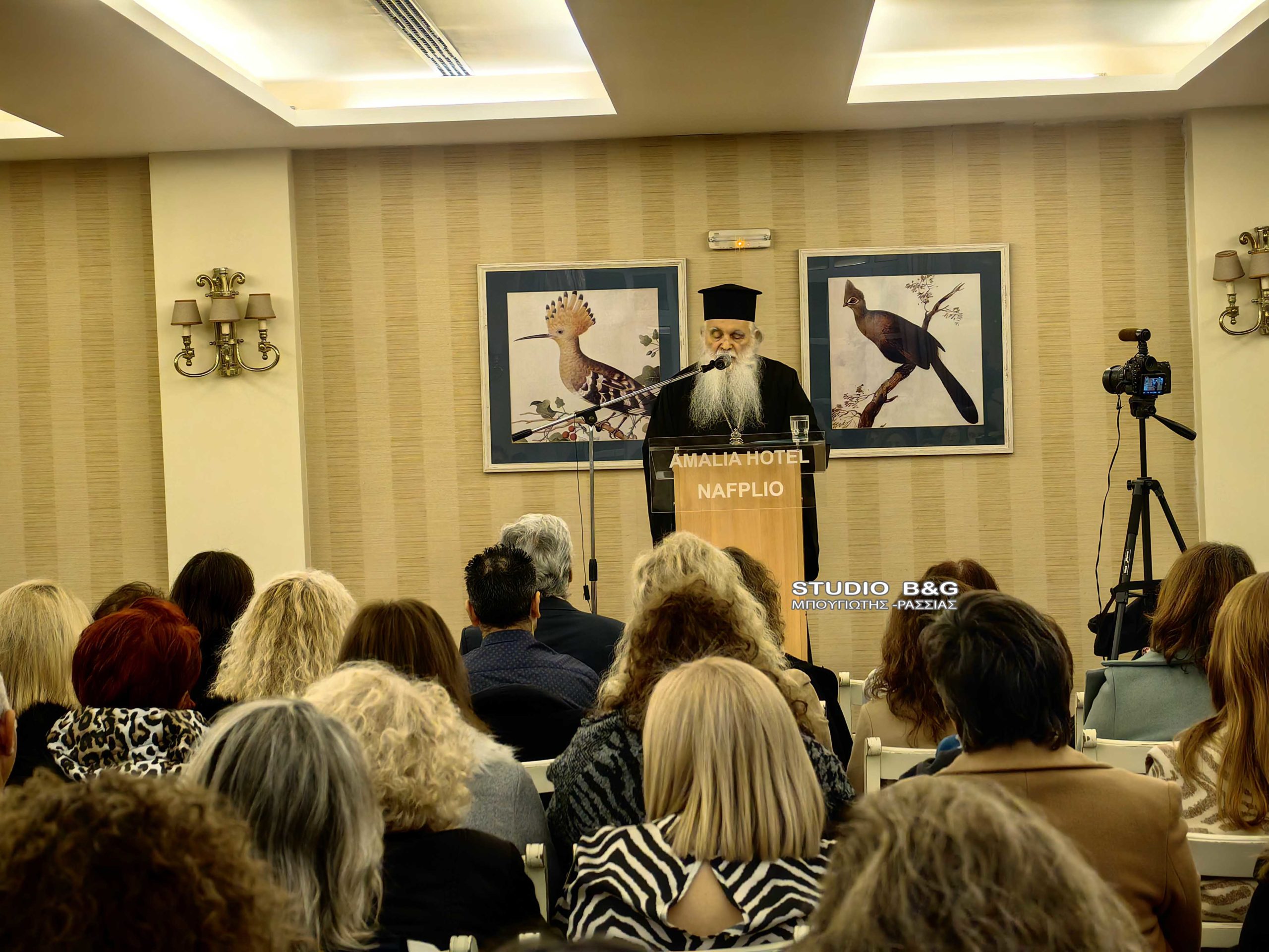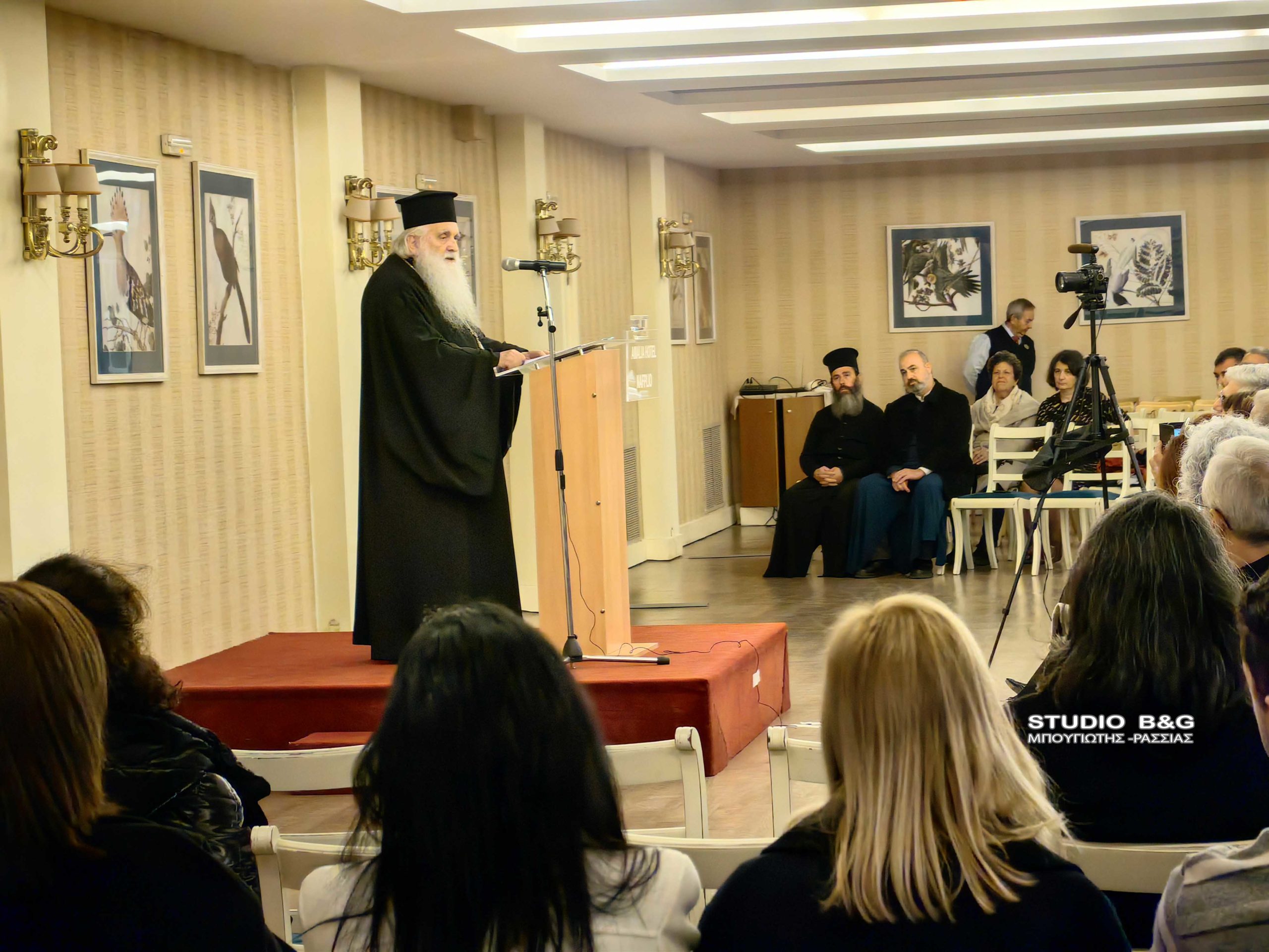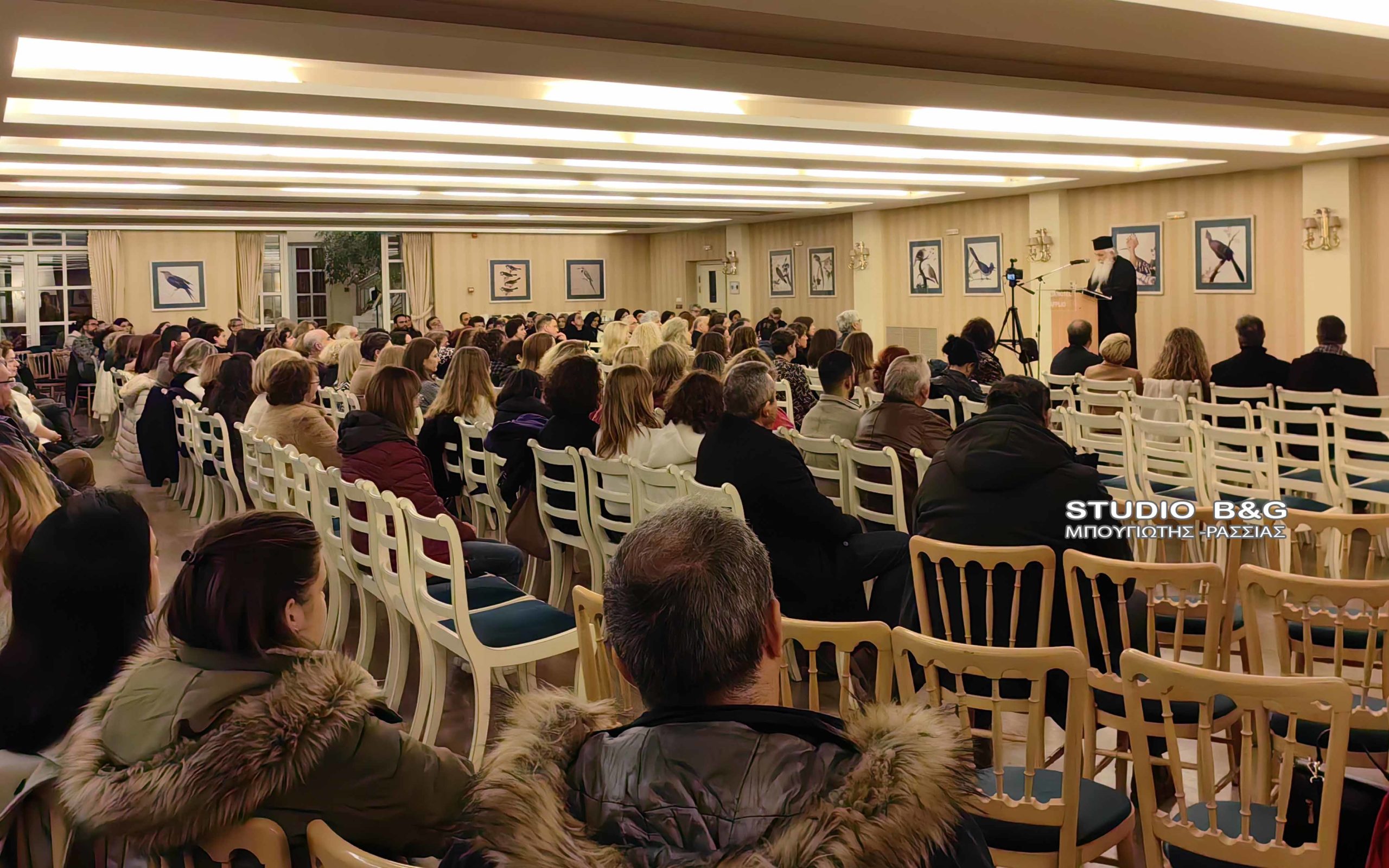 Σε μία κατάμεστη αίθουσα με συμμετοχή καθηγητών, δασκάλων και νηπιαγωγών, ο Μητροπολίτης Αργολίδος κ. Νεκτάριος μίλησε για το έργο των τριών Ιεραρχών αλλά και ανέπτυξε μερικές ιστορίες από το τελευταίο του βιβλίο με θέμα ”111 ΙΣΤΟΡΙΕΣ Μάχες ζωής χαμένες ή κερδισμένες”.