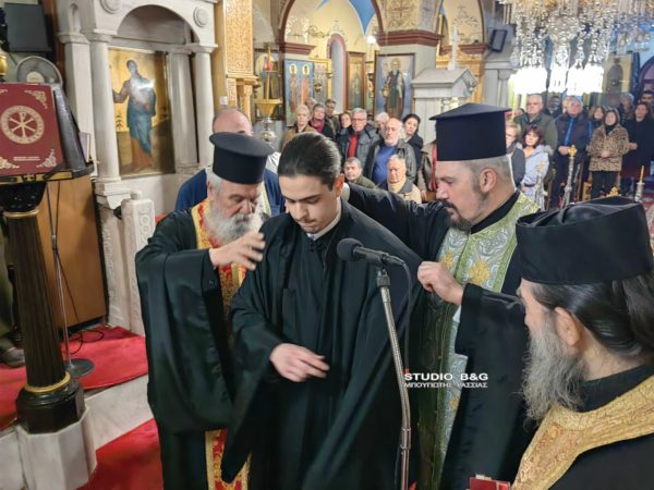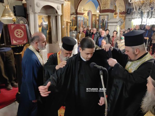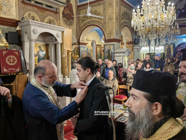 Μετά το πέρας του Ιερού Ευχελαίου ο Μητροπολίτης Αργολίδος κ. Νεκτάριος χειροθέτησε Αναγνώστη τον Αλέξανδρο Μπογιατζή, φοιτητή της Θεολογικής Σχολής Αθηνών και Ιεροψάλτη του Ιερού Ναού Θεομάνας Νέας Κίου.