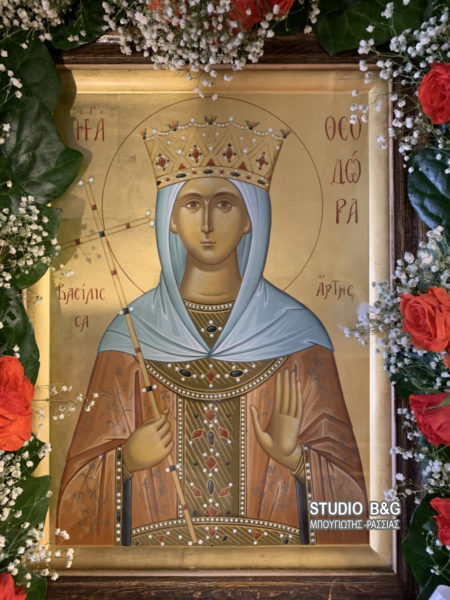 Ακολούθησε εκδήλωση – Ομιλία από τον Σεβασμιώτατο Μητροπολίτη Άρτης κ. Καλλίνικο με θέμα: «Ο βίος της Αγίας Θεοδώρας Βασιλίσσης και πολιούχου Άρτης». Την εκδήλωση προλόγισε η ηθοποιός και φιλόλογος Δέσποινα Γαϊτάνου.