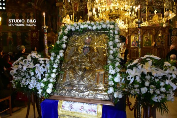 Η υποδοχή της ιερής εικόνας της Παναγίας της Σηλυβριανής έγινε από τον Μητροπολίτη Αργολίδος Νεκτάριο την Παρασκευή 17 .