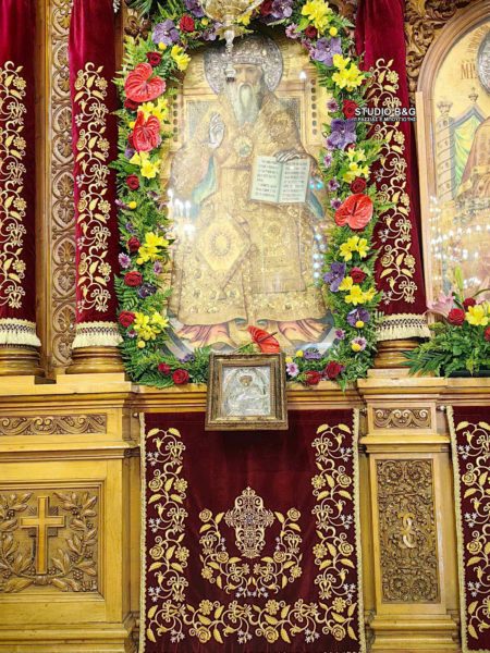 Ανήμερα της εορτής του Αγίου, τελέσθηκε Πολυαρχιερατική Θεία Λειτουργία προεξάρχοντος του Σεβασμιωτάτου Μητροπολίτη Άρτης κ. Καλλινίκου, και συλλειτουργούντων των Σεβασμιωτάτων Μητροπολιτών Αμαρουσίου, Ωρωπού και Μαραθώνος κ. Κυρίλλου και Αργολίδος κ. Νεκταρίου.