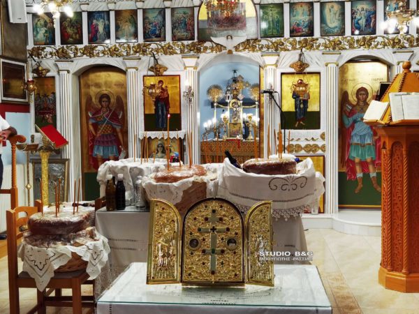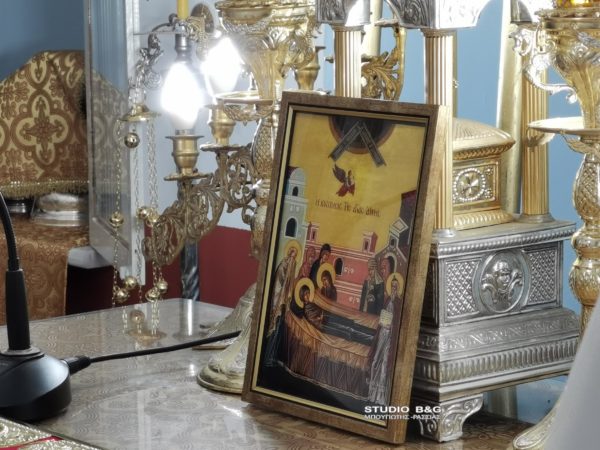 Προς προσκύνηση τέθηκε τεμάχιο Τιμίου ξύλου που έφερε μαζί του ο Μητροπολίτης Αργολίδας προς ευλογία του τόπου και των κατοίκων.