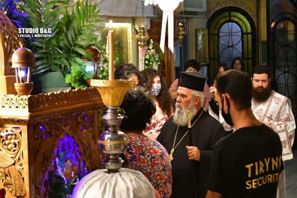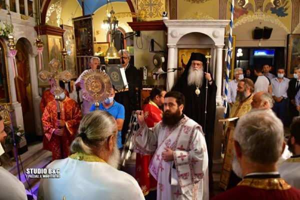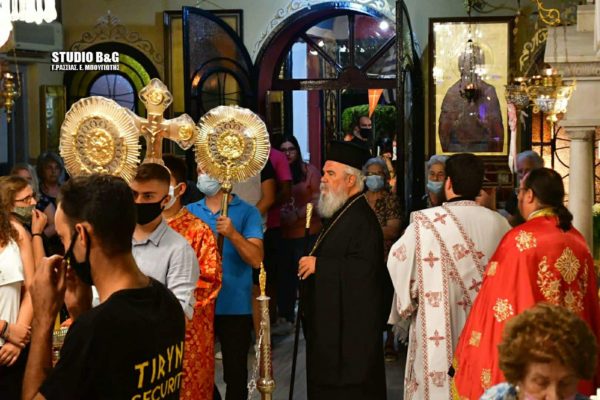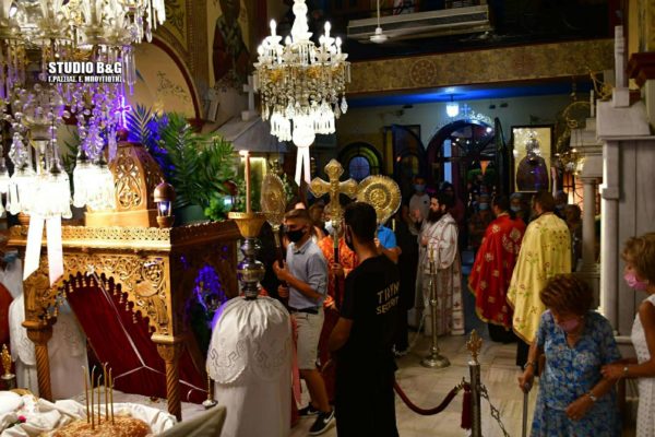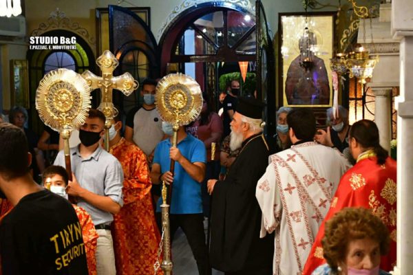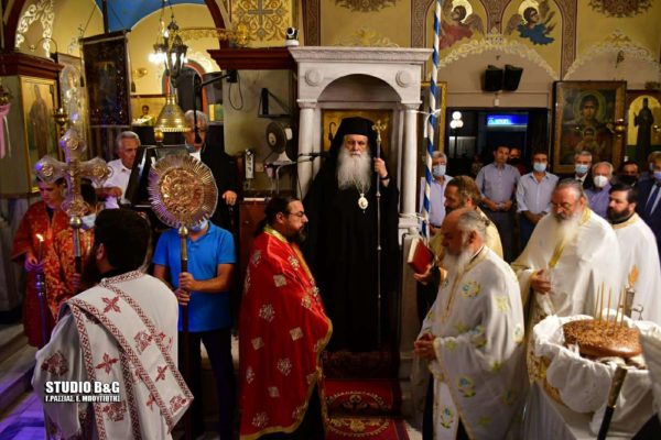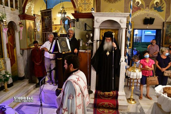 Την παραμονή της Εορτής, Κυριακή 22 Αυγούστου 2021 εψάλει Μέγας Πανηγυρικός Εσπερινός, μετ’ Αρτοκλασίας και θείου κηρύγματος, χοροστατούντος του Σεβασμιωτάτου Μητροπολίτου Αργολίδος κ. Νεκταρίου.