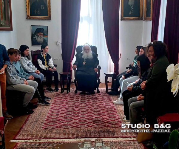 Ευχάριστη έκπληξη για τον Μητροπολίτη Νεκτάριο η επίσκεψη μαθητών του πρώτου Γυμνασίου Ναυπλίου μαζί με τους καθηγητές τους και συζήτησαν πώς ένας συγγραφέας γράφει ένα βιβλίο.