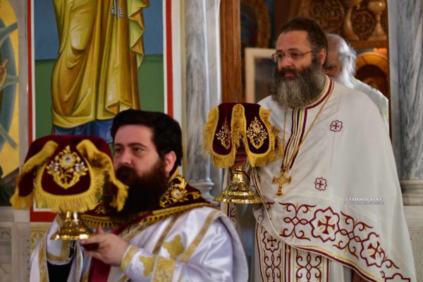 Μετά το πέρας της θείας λειτουργίας ο εφημέριος του Ναού π. Κωνσταντίνος Οικονόμου εκ μέρους του εκκλησιαστικού συμβουλίου και των πιστών, ευχήθηκε στον Μητροπολίτη έτη πολλά και του δώρισε μία αρχιερατική στολή *άμφιο επισκόπου). Ακολούθησε κέρασμα στο αρχονταρίκι του ναού.