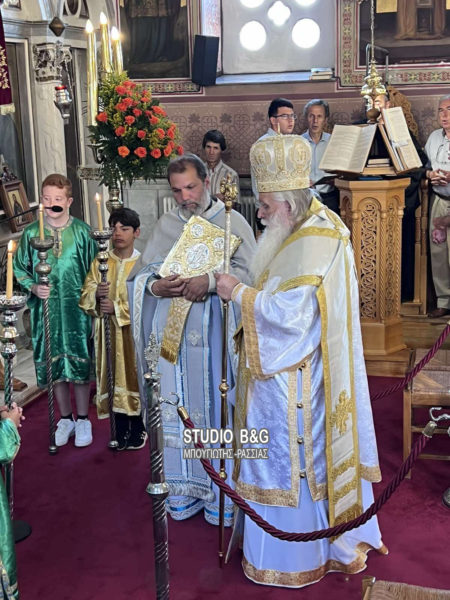 Στη συνέχεια τελέσθηκε κατά την τάξη της Εκκλησίας ο Εσπερινός της Γονυκλισίας, όπου οι πιστοί προσεύχονται γονατιστοί. Μετά το πέρας των Ιερών ακολουθιών, ο εφημέριος του ναού π. Ευάγγελος Πολυχρονόπουλος ευχαρίστησε τον Μητροπολίτη Αργολίδος για την τέλεση των Ιερών ακολουθιών.
