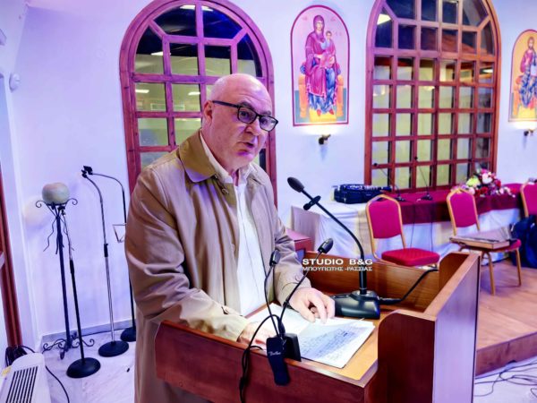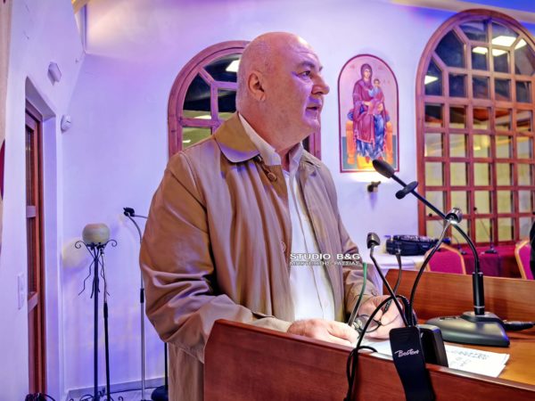 Κατά την εκδήλωση χαιρέτησε ο Πρόεδρος του Συνδέσμου, Πρωτοψάλτης και καθηγητής της Βυζαντινής Σχολής της Ιεράς Μητροπόλεως Αργολίδος Δημήτριος Καρκαλάτος, ο οποίος ευχαρίστησε όλους όσους τίμησαν με την παρουσία τους την εκδήλωση και υποσχέθηκε για το καλύτερο του Συνδέσμου Ιεροψαλτών Αργολίδος.