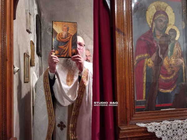 Τον πανηγυρικό εσπερινό τέλεσε ο εφημέριος του Μητροπολιτικού ναού στο Ναύπλιο π. Παναγιώτης Κιντής . Ο Ναός του Αγίου Ανδρέα βρίσκεται μέσα στον ομώνυμο προμαχώνα του κάστρου.