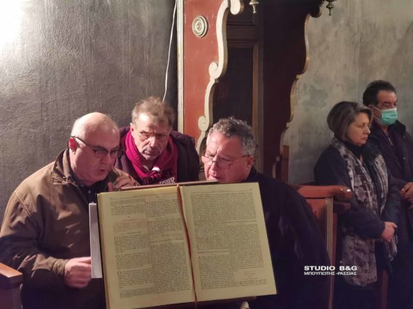 Κατά τον πανηγυρικό εσπερινό έψαλαν ο πρωτοψάλτης και πρόεδρος του συνδέσμου Ιεροψαλτών Αργολίδας Δημήτριος Καρκαλάτος και ο αντιδήμαρχος Ναυπλίου Κωνσταντίνος Ρούτουλας .