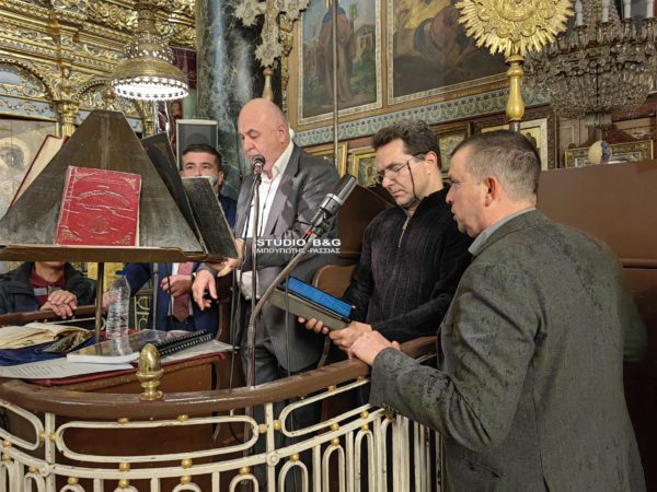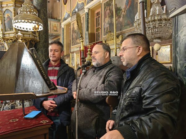 Στις Ιερές ακολουθίες έψαλλε ο πρωτοψάλτης του μητροπολιτικού ιερού ναού Δημήτριος Καρκαλάτος μαζί με το χορό του ιερού ναού Παναγίας Ναυπλίου.