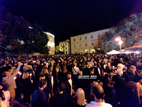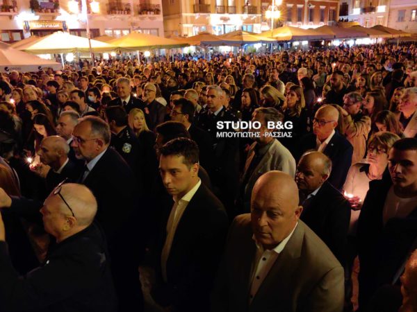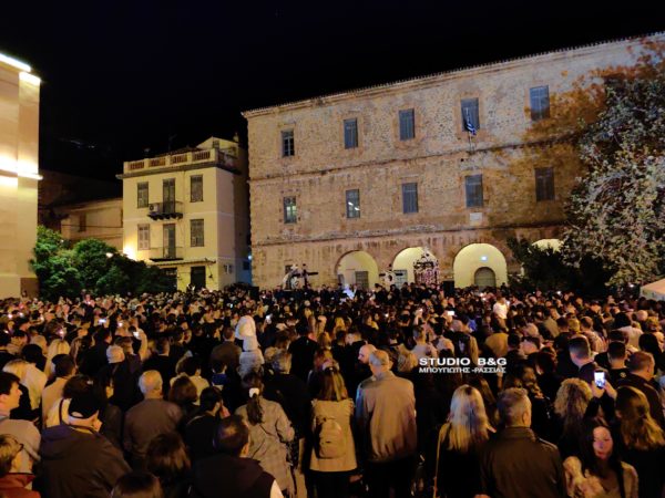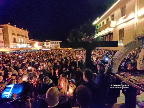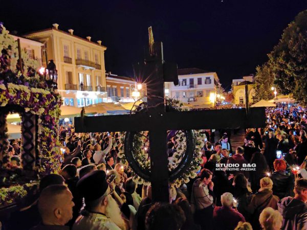 Ένα τεράστιο ποτάμι από πιστούς κατέκλυσε την ιστορική πλατεία Συντάγματος στο Ναύπλιο κατά την συνάντηση των Επιταφίων, τη Μεγάλη Παρασκευή.