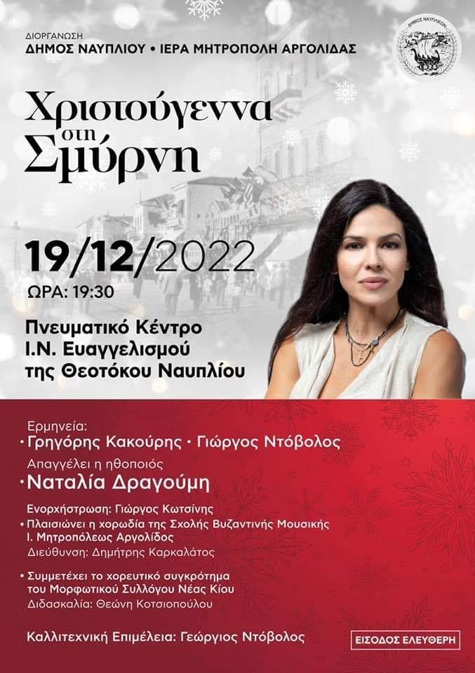 Ο Δήμος Ναυπλιέων και η Ιερά Μητρόπολη Αργολίδος διοργανώνουν εκδήλωση με τίτλο: “Χριστούγεννα στη Σμύρνη“.
