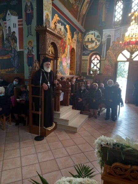 Προ της ακολουθίας τελέστηκε τρισάγιο επί του τάφου στους κεκοιμημένους Κληρικούς που διακόνησαν στην Ενορία. Στον λόγο του ο Σεβασμιώτατος απηύθυνε πατρικές ευχές για καλή Ανάσταση.