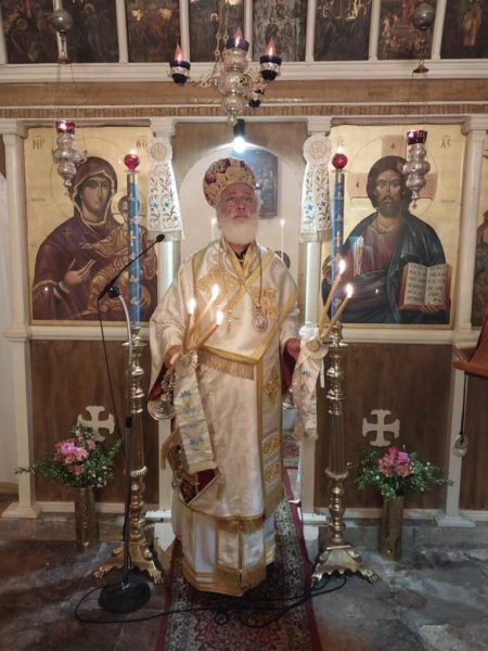 Ο Σεβασμιώτατος στο κήρυγμά του προς το εκκλησίασμα αναφέρθηκε στα χαρμόσυνα μηνύματα της Αναστάσεως και ευχήθηκε καταλλήλως.
