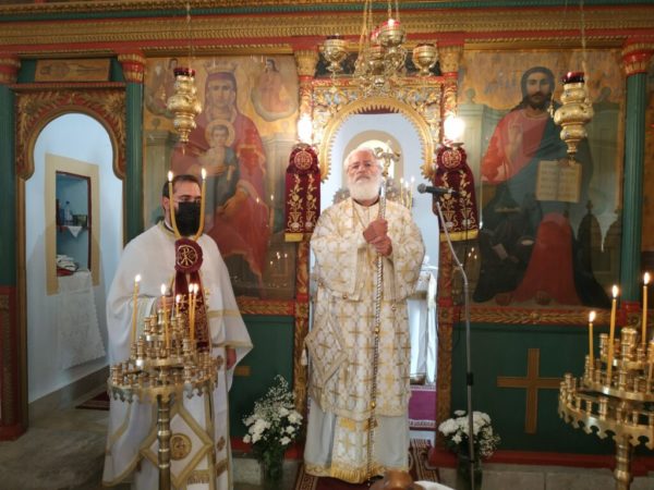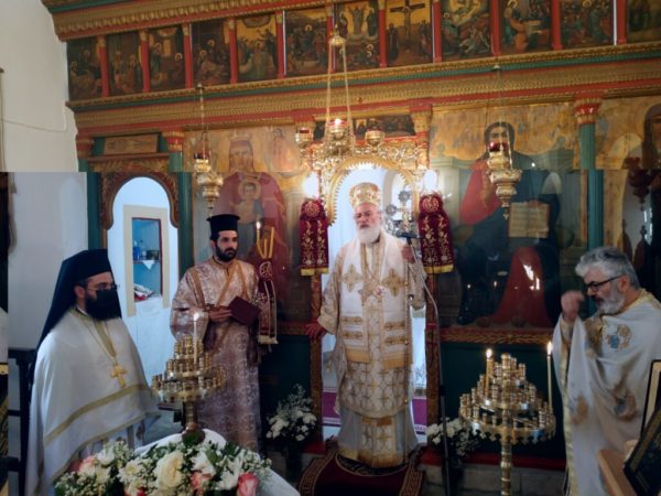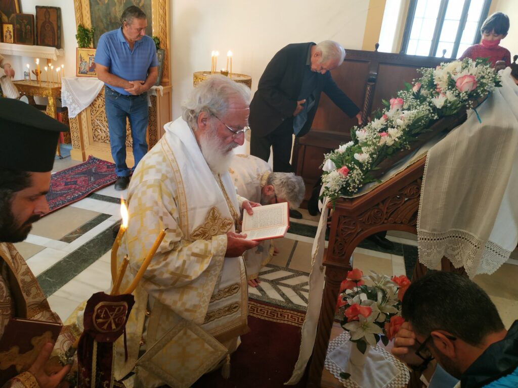 Μετά την ευλόγηση των άρτων και πριν την Απόλυση ο Σεβασμιώτατος κ. Ανδρέας μίλησε κατάλληλα για τη ζωή και το βίο της Οσίας Πελαγίας και ανέπεμψε δέηση για το σεισμό, ευχόμενος παράλληλα χρόνια πολλά στο εκκλησίασμα.