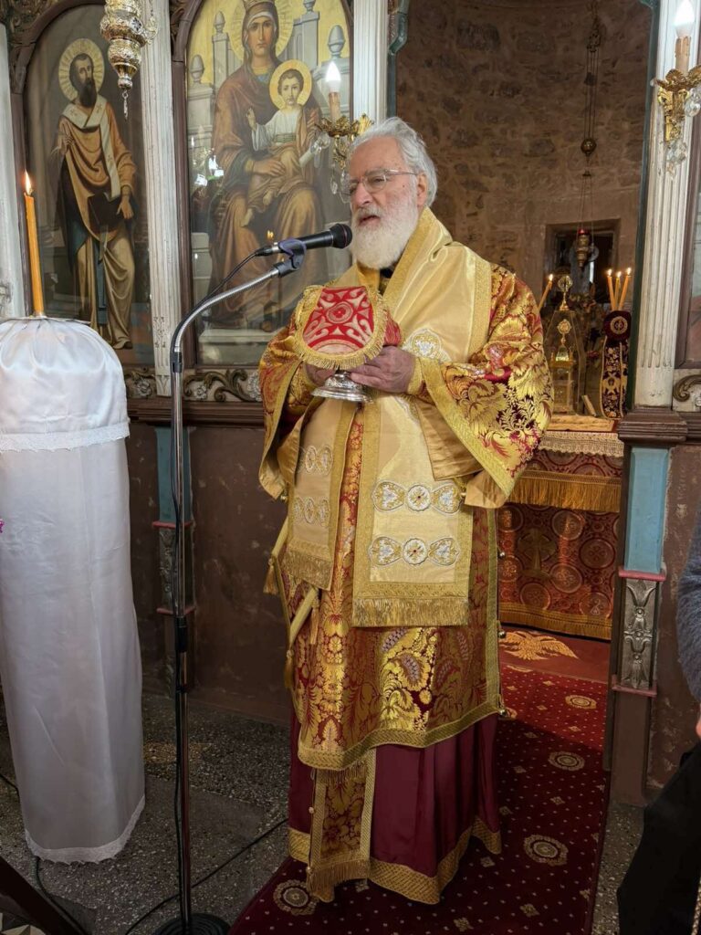Στο κήρυγμά του αναφέρθηκε στην Ευαγγελική Περικοπή των Δέκα Λεπρών. Προ της απολύσεως, τελέστηκαν τα Ιερά Μνημόσυνα των αείμνηστων Νικολάου Σταυρακάκη και Σταυρούλας Αθανασοπούλου – Ινιωτάκη.