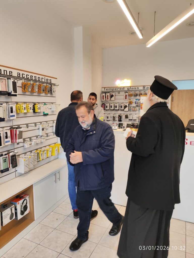 Ο Σεβασμιώτατος μετά του Δημάρχου διένειμαν ως ευλογία, το ημερολόγιο του 2026 της Ιεράς Μητροπόλεως. Συνομίλησαν με τους πολίτες και αντάλλαξαν ευχές για καλό, ευλογημένο και ειρηνικό το νέο έτος.