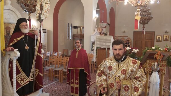 Ο Σεβασμιώτατος χοροστάτησε του Εσπερινού πλαισιωμένος από τον Οικονόμο π. Ευάγγελο Αναγιάννη, εφημέριο του Ιερού Ναού και τον Διάκονο Σταύρο Φανουράκη ενώ το ιερό αναλόγιο διακόνησε ο Πρωτοπρεσβύτερος Σπυρίδωνας Φουκαράκης, Αναπλ. Γενικός Αρχιερατικός Επίτροπος της Ιεράς Μητροπόλεως.