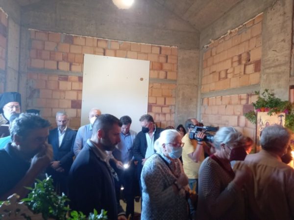 Απευθυνόμενος ο Σεβασμιώτατος προς το φιλάγιο και πολυπληθές εκκλησίασμα, ομίλησε για το σημαντικό έργο της ανοικοδόμησης του Ναού, που είναι ιστορικό και πολιτισμικό μνημείο, αλλά και φάρος φωτεινός για τους Αρκαλοχωρίτες, για τους κατοίκους της ευρύτερης περιοχής και τους επισκέπτες της πόλεως. Ο Σεβασμιώτατος ευχαρίστησε όλους όσους συνετέλεσαν στην αποκατάσταση του Ιερού Ναού και ανακοίνωσε τα Ιερά εγκαίνια, που θα τελεστούν πρώτα ο Θεός στις 27 Σεπτεμβρίου 2022, ένα χρόνο μετά τον καταστροφικό σεισμό.