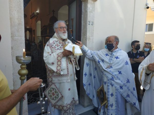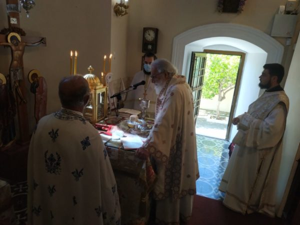 Στην Θεία Λειτουργία συμμετείχαν ο Πανοσιολ. Αρχιμ. Ιερόθεος Χιώτης, Προϊστάμενος της Ενορίας, ο Πρωτοπρεσβύτερος Γεώργιος Μαραυγάκης, εφημέριος της Ενορίας και ο Διάκονος Μαρίνος Δασκαλάκης, ενώ το ιερό αναλόγιο διακόνησε ο Πρεσβύτερος Ιωάννης Καπελλάκης.