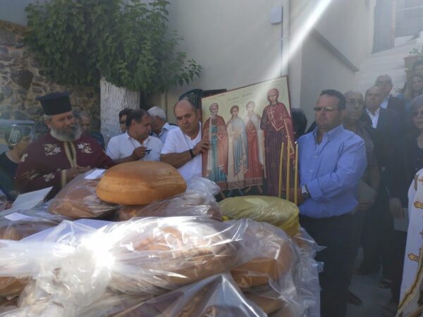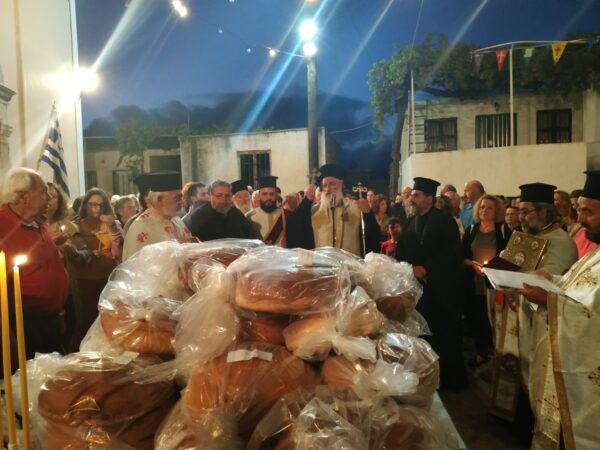 Μετά την ακολουθία του Εσπερινού πραγματοποιήθηκε η λιτάνευση της Ιεράς Εικόνας του Αγίου Ευσταθίου στους δρόμους πέριξ του Ιερού Ναού και η ευλόγηση των άρτων παρουσία πλήθους πιστών και των τοπικών αρχών.
