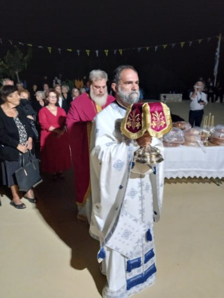 Την Παρασκευή 16 Σεπτεμβρίου 2022, τον εσπερινό, τον Όρθρο, την Θεία Λειτουργία και τα Ιερά εγκαίνια τέλεσε ο Μητροπολίτης Αρκαλοχωρίου, Καστελλίου και Βιάννου. Στις Ιερές Ακολουθίες έλαβαν μέρος, ο Αρχιμ. Αγαθάγγελος Γιανναράκης, ο Γενικός Αρχιερατικός Επίτροπος της Μητροπόλεως Πρωτοπρεσβύτερος Γεώργιος Χριστοδουλάκης, ο Πρωτοπρεσβύτερος Εμμανουήλ Κοσιδεκάκης και ο Αρχιδιάκονος Μαρίνος Δασκαλάκης.