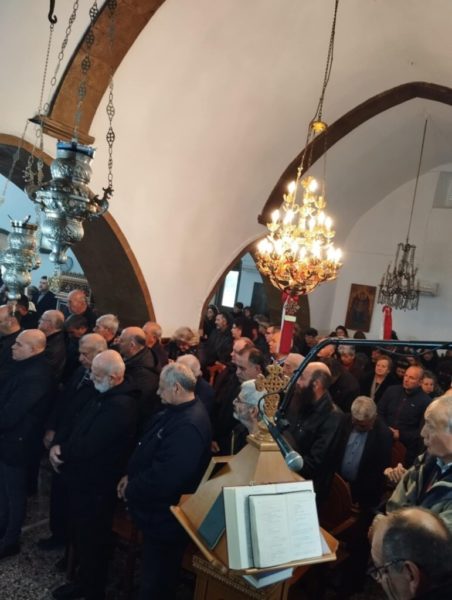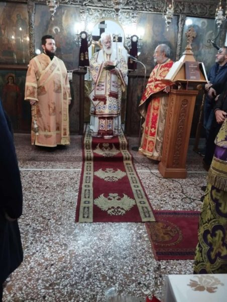 Στο κήρυγμά του αναφέρθηκε στην σημερινή Ευαγγελική περικοπή και ευχήθηκε έτη πολλά και ευλογημένα. Προ της απολύσεως, τελέστηκαν τα Ιερά μνημόσυνα της αείμνηστης Βασιλείας Λουλούδη και του μακαριστού Περικλή Τσισμενάκη.