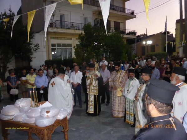 Την Τετάρτη 5 Αυγούστου παραμονή της Θείας Μεταμορφώσεως του Σωτήρος, τελέσθηκε ο Μέγας πανηγυρικός Εσπερινός στον πανηγυρίζοντα Ιερό Καθεδρικό Ναό στο Αρκαλοχώρι, χοροστατούντος του Σεβασμιωτάτου Μητροπολίτη Αρκαλοχωρίου, Καστελλίου και Βιάννου κ. Ανδρέα. Το Θείο λόγο κήρυξε ο Σεβ. κ. Ανδρέας αναφερόμενος στη παρουσία της Τριαδικής Θεότητας εις το Θαβώρ και στην ανάγκη του φωτισμού μας από το Θεϊκό φως και όχι από τα κοσμικά φώτα του κόσμου τούτου. Ακολούθησε η λιτάνευση της Ιερής Εικόνας στους κεντρικούς δρόμους της πόλεως, με την πάνδημη συμμετοχή του κόσμου ενώ τέλος τελέσθηκε η ευλόγηση των άρτων.