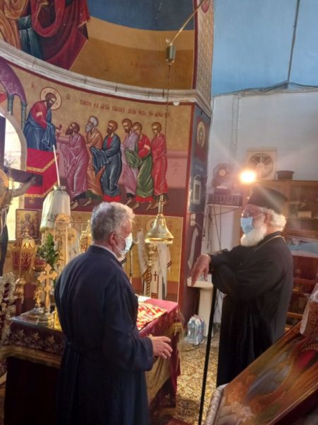 Ο Σεβασμιώτατος συνομίλησε με τους εφημερίους εκφράζοντας την αμέριστη συμπαράστασή του. Δήλωσε πως η τοπική Εκκλησία θα είναι δίπλα τους σε οτιδήποτε χρειαστούν και ευχήθηκε στη γρήγορη επούλωση των πληγών από τον σεισμό.