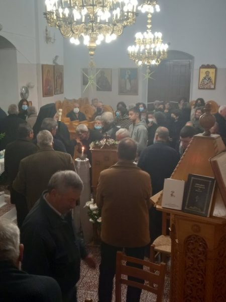 Συμπροσευχόμενοι παρέστησαν ο Πρωτοσύγκελος της καθ’ ημας Ιεράς Μητροπόλεως Πανοσ. Αρχιμ. π.Επιφάνιος Ζαχαράκης και ο προϊστάμενος του Ναού Πρωτοπρεσβύτερος π.Δημήτριος Πάγκαλος, το δε ψαλτήριο διακόνησε ο Διάκονος π.Πέτρος Αράπογλου.