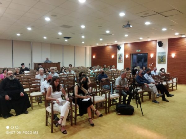 Ομιλητές της εκδήλωσης, που πραγματοποιήθηκε τη Δευτέρα 29 Αυγούστου ήταν ο Μητροπολίτης Αρκαλοχωρίου κ. Ανδρέας, ο κ.Γ εώργιος Αγοραστάκης, πρόεδρος του Συλλόγου «Οι φίλοι του Μίκη Θεοδωράκη».