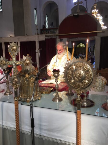 Προ της απολύσεως ο Σεβασμιώτατος τέλεσε το τεσσαρακονθήμερο μνημόσυνο της μεγάλης ευεργέτριας Φωτεινής Χανούν.