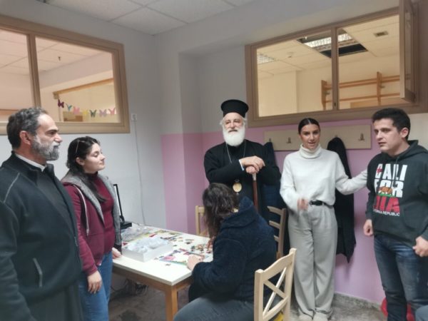 Ο Σεβασμιώτατος, συνοδευόμενος από τον αναπληρωτή Πρόεδρο του Κέντρου Αλληλεγγύης και Κοινωνικής Συνοχής, Αρχιμανδρίτη Αγαθάγγελο Γιανναράκη και μέλη του Δ.Σ., συναντήθηκε με τον Διευθυντή του Συλλόγου κ. Κυριακάκη Ζαχαρία, την Υποδιευθύντρια κ. Μαυρίδη Ιωάννα, με μέλη του προσωπικού αλλά και τους τροφίμους.