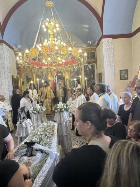 Ο σεπτός Ποιμενάρχης εξέφρασε την κατ’ άνθρωπων παρηγορία προς τους οικείους και ευχήθηκε Κύριος ο Θεός να την κατατάξει μετά των Αγίων και Δικαίων. Μεταξύ άλλων παρεβρέθησαν, ο Δήμαρχος Μινώα Πεδιάδος κ.Βασίλης Κεγκέρογλου, οι Αντιπεριφερειάρχες Κρήτης κ. Νίκος Συριγωνάκης και κ. Γιάννης Αναστασάκης, η Εντεταλμένη Περιφερειακή Σύμβουλος κα. Ελένη Μαράκη-Μπελαδάκη και ο Διευθυντής Πρωτοβάθμιας Εκπαίδευση Ηρακλείου κ. Μανώλης Μπελαδάκης.
