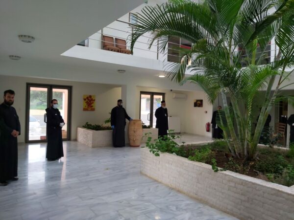 Η σύσκεψη έλαβε χώρα στο αίθριο του Πολιτιστικού Πολύκεντρου της Ιεράς Μητροπόλεως στο Αρκαλοχώρι, με την λήψη των απαραίτητων μέτρων προφύλαξης και τηρουμένης της απαιτούμενης απόστασης μεταξύ των μελών.