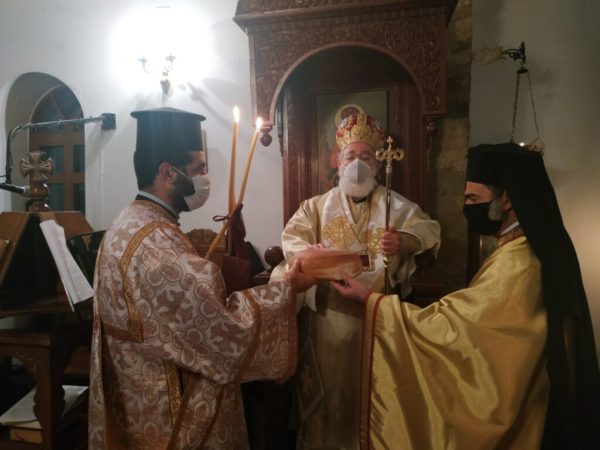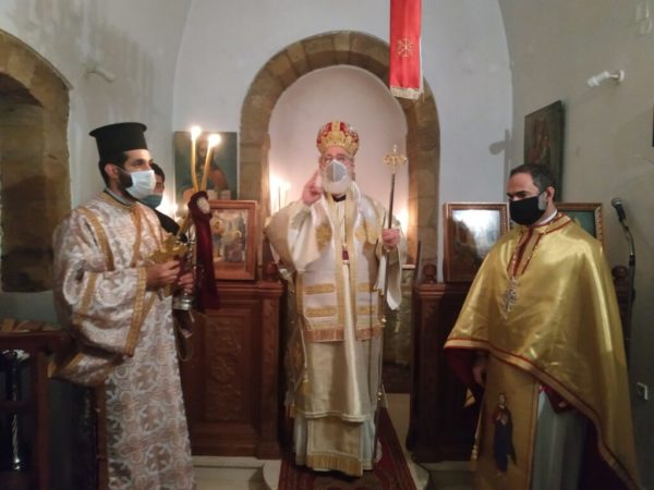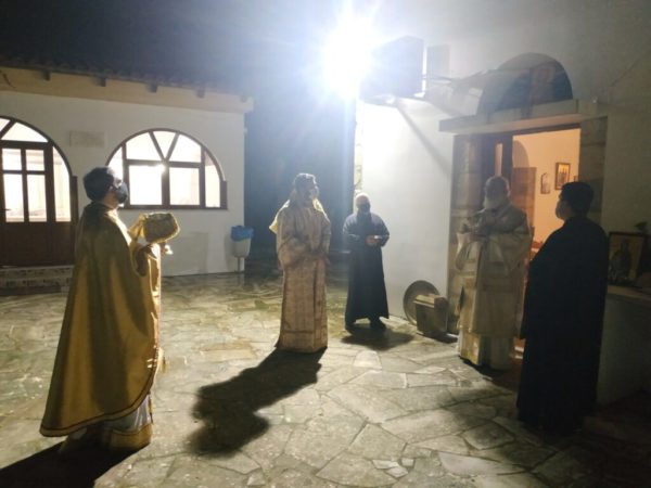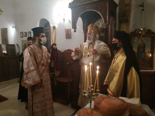 Ο Σεβασμιώτατος τέλεσε Αρχιερατική Ιερά Αγρυπνία με την συμμετοχή του Πανοσιολ. Αρχιμ. Αγαθάγγελου Γιανναράκη και του Αρχιδιακόνου Κωνσταντίνου Αρμενάκη. Συμπροσευχόμενοι εκ του ψαλτηρίου ο Πρωτοπρεσβύτερος Σπυρίδων Φουκαράκης, Αναπλ. Γενικός Αρχιερατικός Επίτροπος και ο Πρεσβύτερος Ιωάννης Καπελλακης ενώ εκ του Ιερού βήματος παρέστη ο Πρωτοπρεσβύτερος Βασίλειος Χρονάκης, εφημέριος της Ενορίας.
