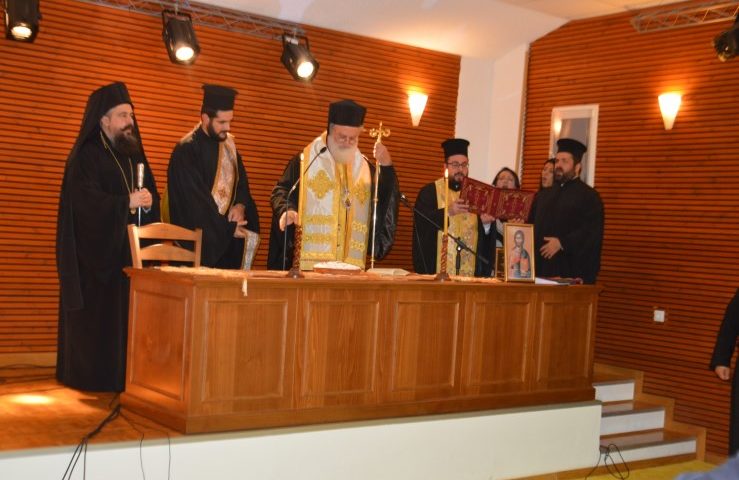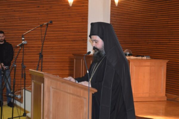 Η εκδήλωση ξεκίνησε με το χαιρετισμό του εκπροσώπου της Α.Θ.Π. κ.κ. Βαρθολομαίου, Πανοσιολ. Αρχιμανδρίτη κ. Νικηφόρου Κουνάλη, ιεροκήρυκα της Ιεράς Αρχιεπισκοπής Κρήτης.