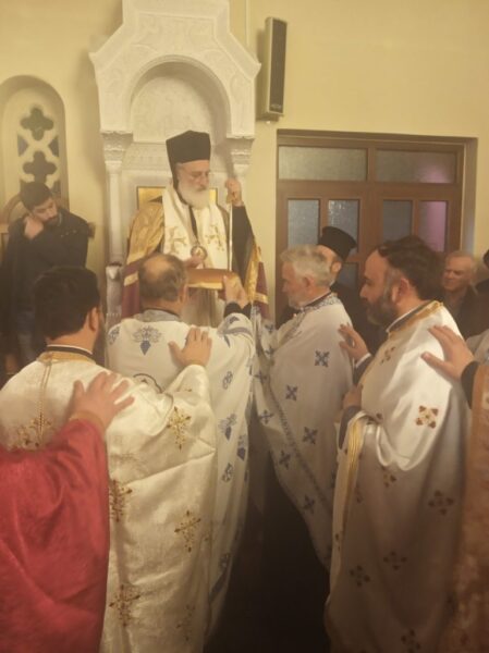 Στο Θείο λόγο του ο Σεβασμιώτατος αναφέρθηκε στα μεγάλα Χαρίσματα του Αγίου, την αγάπη και την ταπείνωσή του και παράλληλα ευχαρίστησε κλήρο και τον λαό δια την παρουσία τους.
