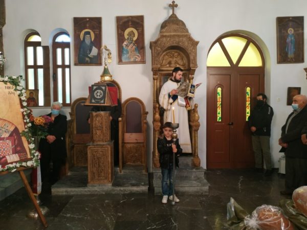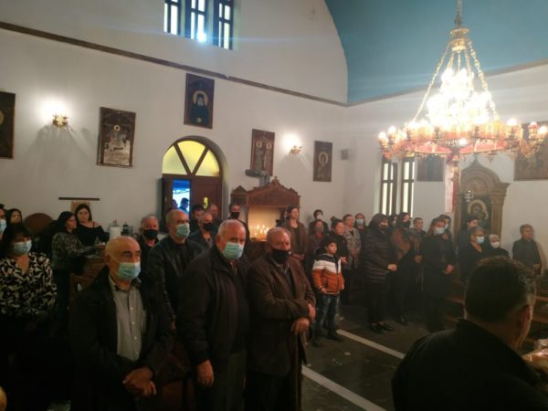 Της Αρχιερατικής Θείας Λειτουργίας προεξήρχε ο Σεβασμιωτάτος Μητροπολίτης Αρκαλοχωρίου, Καστελλίου και Βιάννου κ. Ανδρέας πλαισιωμένος από τον εφημέριο της Ενορίας, Πρεσβύτερο Σταύρο Φανουράκη και τον διάκονο Μαρίνο Δασκαλάκη. Το ψαλτήριο διακόνησε ο Οικονόμος Ιωάννης Καπελλάκης και ο αναγνώστης Παναγιώτης Μουστακάκης. Προ της απολύσεως ο Σεβασμιώτατος ευλόγησε τους προσφερόμενους άρτους, κήρυξε κατάλληλα τον θείο λόγο αναφερόμενος στη ζωή και τα χαρίσματα του Αγίου Νικολάου, υπογραμμίζοντας την πίστη, την ταπείνωση, την πραότητα και την αγάπη προς τον Θεό. Τέλος ευχαρίστησε το εκκλησίασμα για την παρουσία του και ευχήθηκε χρόνια πολλά και ευλογημένα.