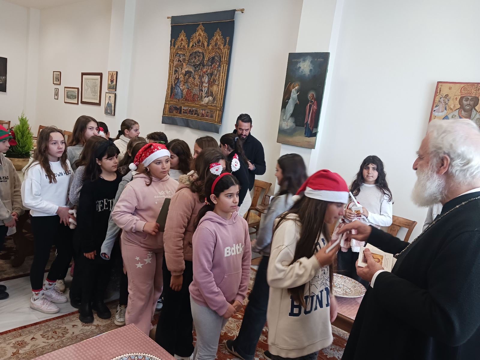 Στην συνέχεια, ακολούθησαν μαθητές του 1ου και 2ου Δημοτικού Σχολείου Αρκαλοχωρίου, όπου επίσης έψαλλαν κάλαντα με μουσικά όργανα. Ο Σεβασμιώτατος, εξέφρασε τη χαρά του για την επίσκεψη των παιδιών, και τους ευχήθηκε εγκαρδίως καλά και ευλογημένα Χριστούγεννα και καλές γιορτές.