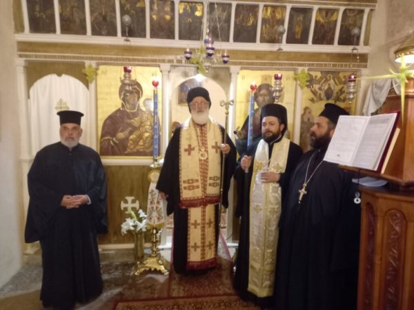 Στην συνέχεια, τελέστηκε η ακολουθία του Εσπερινού της Εορτής με την συμμετοχή του εφημερίου και Αρχιερ. Επιτρόπου της Α ‘ Αρχ. Περιφέρειας Πανοσ. Αρχιμ. π. Φιλοθέου Πηγιάκη, του Αναπλ. Γενικού Αρχιερατικού Επιτρόπου Πρωτοπρεσβυτέρου π.Σπυρίδων Φουκαράκη, του Πρωτοπρεσβυτέρου π. Αλεξάνδρου Παναγιωτάκη και του Αρχιδιακόνου π.Μαρίνου Δασκαλάκη. Στον λόγο του ο Σεβασμιώτατος, ευχαρίστησε εγκαρδίως τους εφημέριους της Ενορίας, Πανοσ. Αρχιμ. και Αρχ. Επίτροπο της Α’ Αρχ. Περιφέρειας π.Φιλόθεο Πηγιάκη και τον Πρωτοπρεσβύτερο π.Αλέξανδρο Παναγιωτάκη, τον Δήμαρχο Αρχανών-Αστερουσίων κ. Μανόλη Κοκοσάλη και όσους συνετέλεσαν για την ανακαίνιση του Ναού.