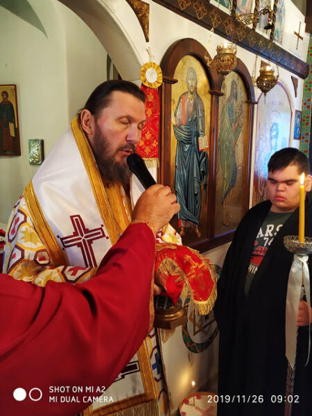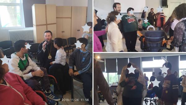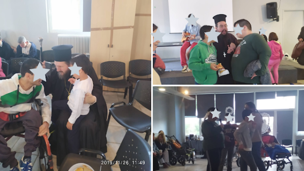 Μετά το “Δι’ ευχών” και κατά την διανομή του αντιδώρου και του ευλογημένου άρτου, ο π. Αντώνιος μετέβηκε με το Άγιο Δισκοπότηρο σε όλα τα τμήματα του Ιδρύματος, για να  κοινωνήσουν τα παιδιά αλλά και στους νέους τρόφιμους του ιδρύματος που ήρθαν μετά το κλείσιμο του ιδρύματος χρόνιων παθήσεων της Γλυφάδας, οι οποίοι δεν μπορούσαν να βρίσκονται στο Εκκλησάκι.