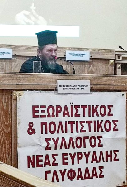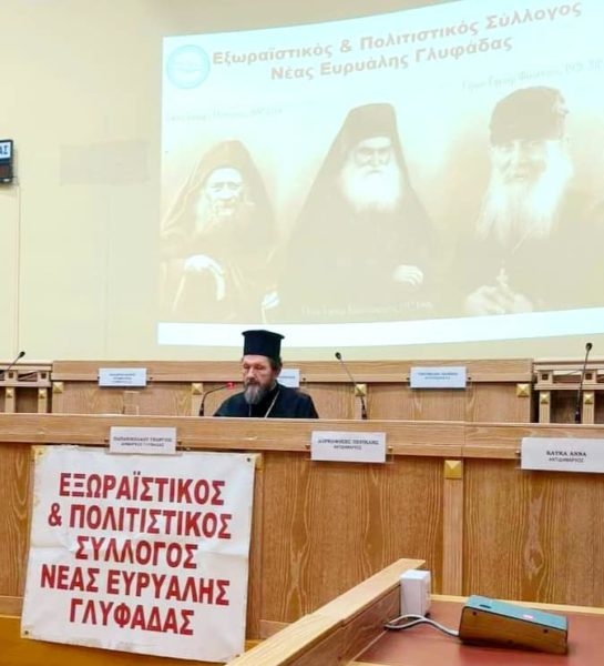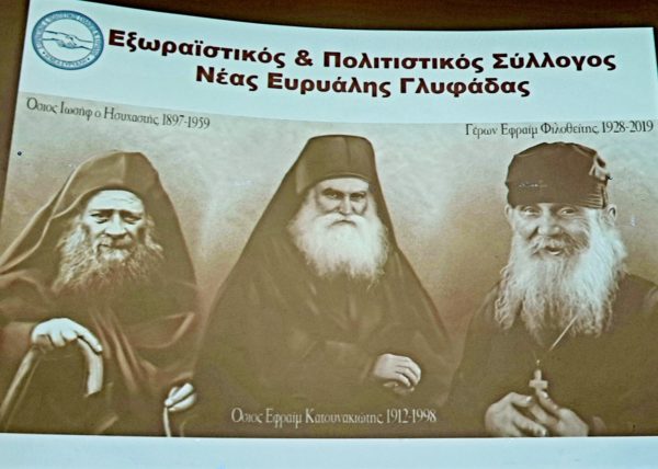 Ομιλία με θέμα «Οι σύγχρονοι Άγιοι Γέροντες της Ορθοδοξίας μας: Άγιος Ιωσήφ ο Ησυχαστής ο Σπηλαιώτης (1897-1959), Όσιος Εφραίμ ο Κατουνακιώτης (1912-1998) και Γέρων Εφραίμ ο Φιλοθεΐτης ο εξ Αριζόνας (1928-2019)» παραχώρησε ο Σεβασμιώτατος Μητροπολίτης Γλυφάδας κ. Αντώνιος στην κατάμεστη αίθουσα του Δημαρχείου Γλυφάδας.