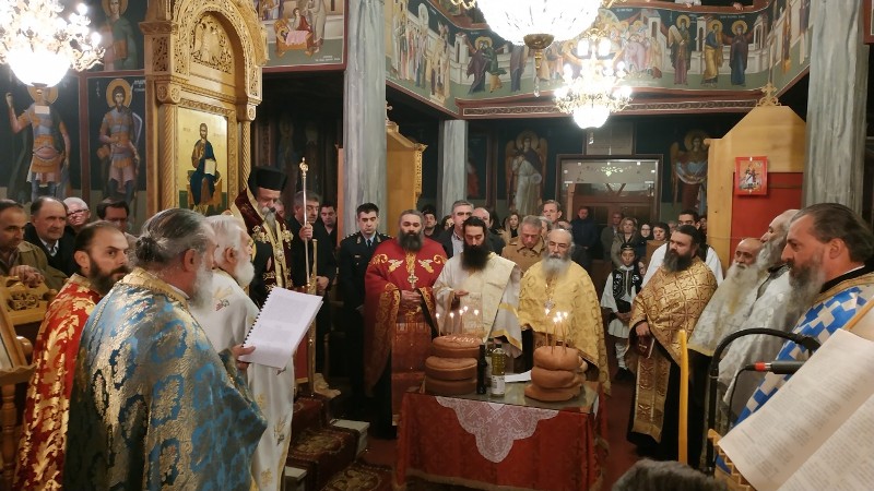 Στον Πανηγυρικό Εσπερινό, το απόγευμα της Τετάρτης 16 Ιανουαρίου, χοροστάτησε ο Σεβασμιώτατος Μητροπολίτης Γρεβενών κ. Δαβίδ και συμμετείχαν πολλοί κληρικοί της Μητροπόλεως καθώς και πλήθος πιστών που ήρθαν να προσκυνήσουν τα λείψανα του Αγίου και να ζητήσουν τις πρεσβείες του. Κατά τη διάρκεια του Εσπερινού τελέστηκε Αρτοκλασία και μετά το πέρας της Ακολουθίας, στην αίθουσα του Πνευματικού Κέντρου «Μιχάλης Καραγιάννης», πραγματοποιήθηκε ομιλία από τον Γραμματέα της Ιεράς Μητροπόλεως Γρεβενών και συγγραφέα κ. Αντώνιο Παπαβασιλείου, με θέμα: «Των Ελλήνων τα πνεύματα ελαφρά. Ο Ευθύμιος Καούδης στη Μακεδονία».