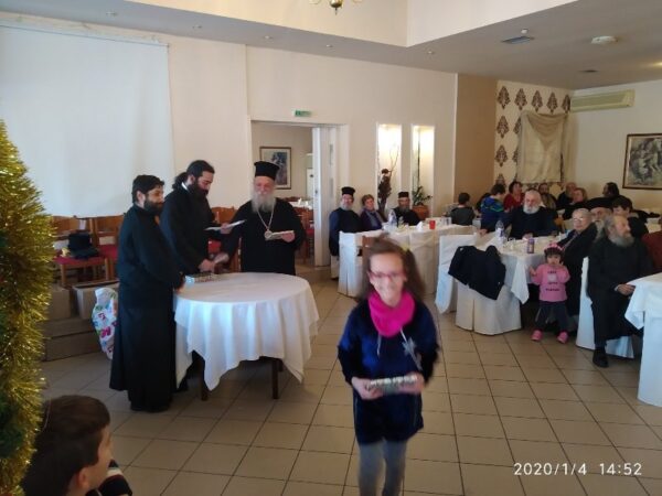 Ο Σεβασμιώτατος αφού ευλόγησε και έκοψε την Βασιλόπιτα, μοίρασε στα παιδιά όμορφα παιχνίδια ενώ στους μεγάλους δώρησε ένα ημερολόγιο πνευματικής οικοδομής ώστε κάθε μέρα του έτους να την ξεκινούν με πνευματική τροφοδοσία.